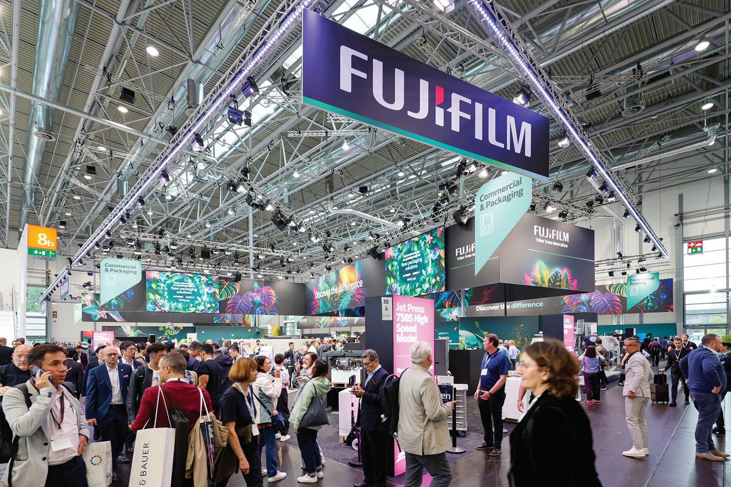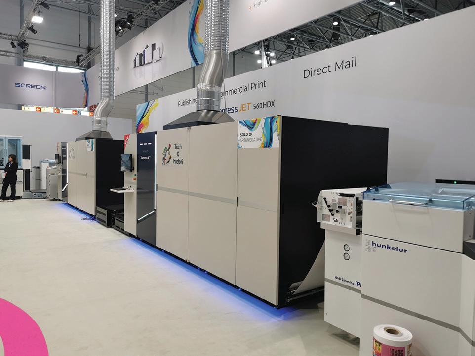 The stand consists of individual zones for commercial printing, digital printing, and packaging, with KP-Connect keeping track of the presswork taking place in each demonstration.