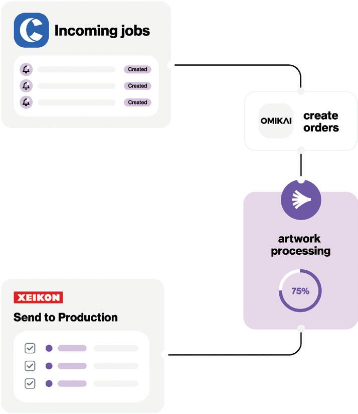 Atomyx Prepare has an API that can be integrated with external platforms to convert, check, optimize, and prepare files for onboarding. This is designed to work with on premise onboarding in conjunction with cloud-based print procurement or MIS/ERP systems. At drupa, expect to see the self-onboarding functionality of Atomyx Prepare with OEM partners DesignNbuy and Omikai, with others in the pipeline. Continued on Page 2