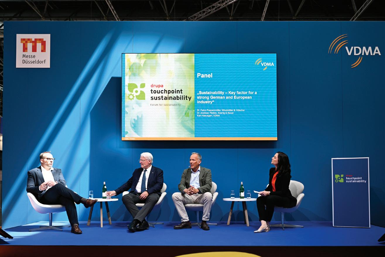 touchpoint sustainability offers selected exhibitors at drupa, who contribute to greater sustainability with innovative solutions, a central platform and stage to transfer top-class expertise, present their concepts, solutions and best practice as well as for professional discussion. Ausgewählten Ausstellern der drupa, die mit innovativen Lösungen zu mehr Nachhaltigkeit beitragen, bietet der touchpoint sustainability eine zentrale Plattform und Bühne zum hochkarätigen Know-how-Transfer, zur Präsentation ihrer Konzepte, Lösungen und Best Practices sowie zum fachlichen Austausch.