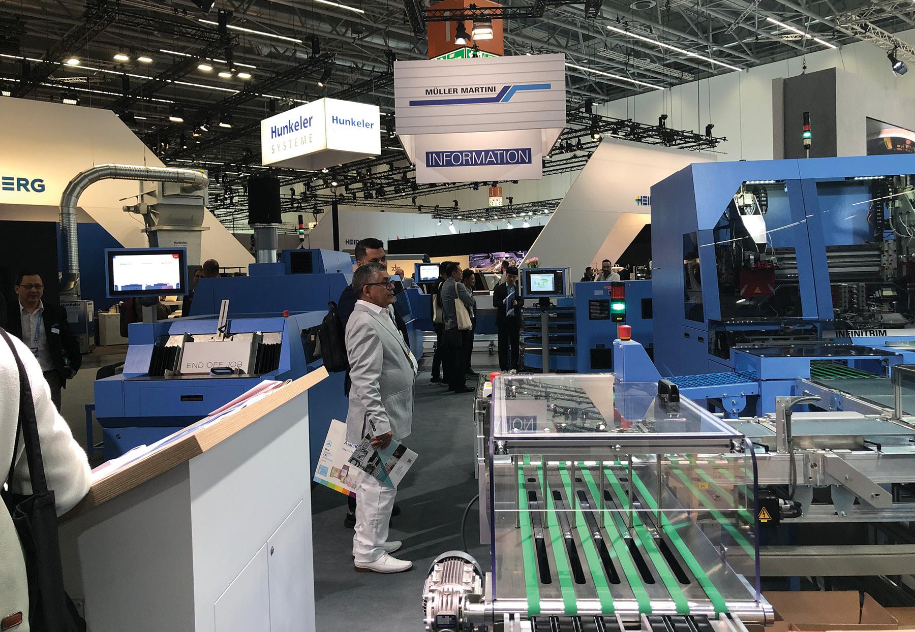 Müller Martini began digitizing its manufacturing 20 years ago with the introduction (at drupa 2004) of a CIP4 JDF/JMF compliant workflow for its SigmaLine book production system. At drupa 2024, Müller Martini and Hunkeler coordinated their efforts to present “Smart Factory” solutions for networked, fully automated post-print processing.