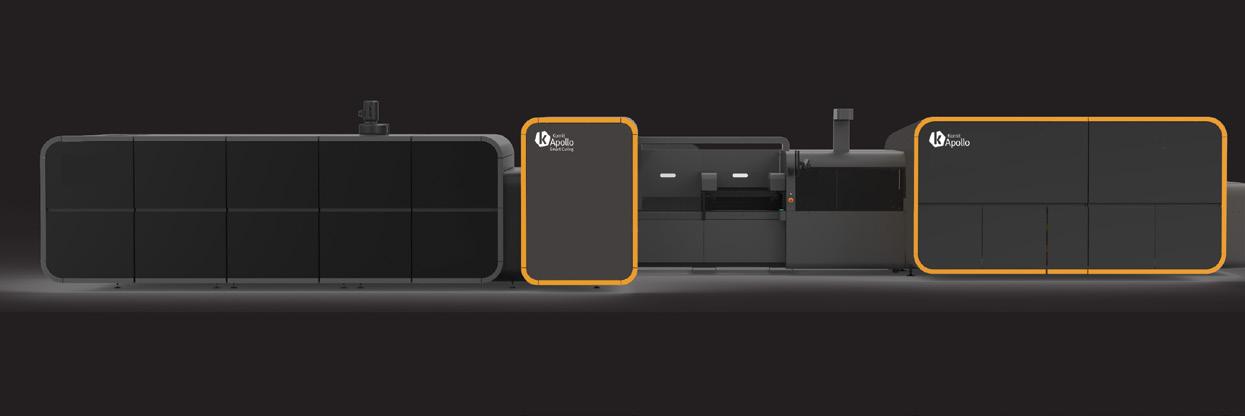 The platform for packaging is a Lithrone GX40 advance EX Edition (GLX-740A+CC), a UVequipped, 40″ seven-color sheetfed press with inline double coater. Komori says that thanks to its CMYK + OGV color gamut, the Lithrone GX40 can reproduce many branded colors without PMS spot inks. Assets include Komori’s Super Short Makeready and Smart Color features for lowering makeready waste and eliminating print problems.