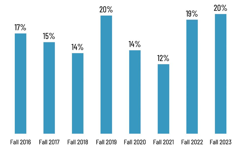 A challenge that has appeared on every survey— and even those going back to the old TrendWatch days—is “keeping up with technology.” Looking at how this challenge has been perceived over the past seven years, we find that it is not a major one (in 2023 it was the number 12 challenge and while it has historically been a top 20 challenge, it’s not a top of mind issue. There was a spike in 2019, likely because