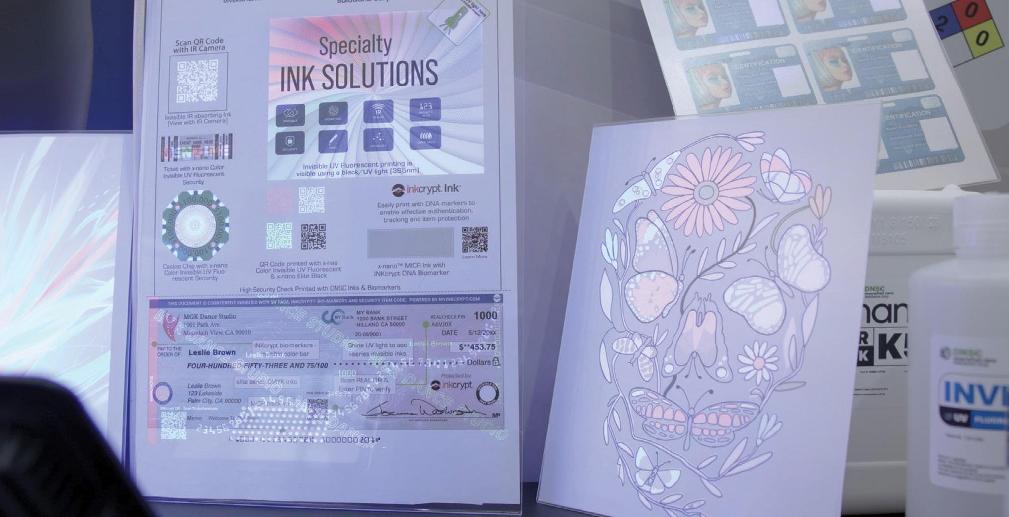 Bruce Carnes: We’re focused on developing specialty pigments and dyes, and we developed a few aqueous-based fluid inks for digital inkjet on-demand. These fluids include MICR—magnetic ink character recognition—typically used on checks or lottery tickets around the world. We also have a UV fluorescent, which is used for security and anti-counterfeit applications. The UV fluorescent inks are visible with a 395-nanometer (nm) black light. In addition to that, we have an infrared ink that can be detected with an infrared camera.