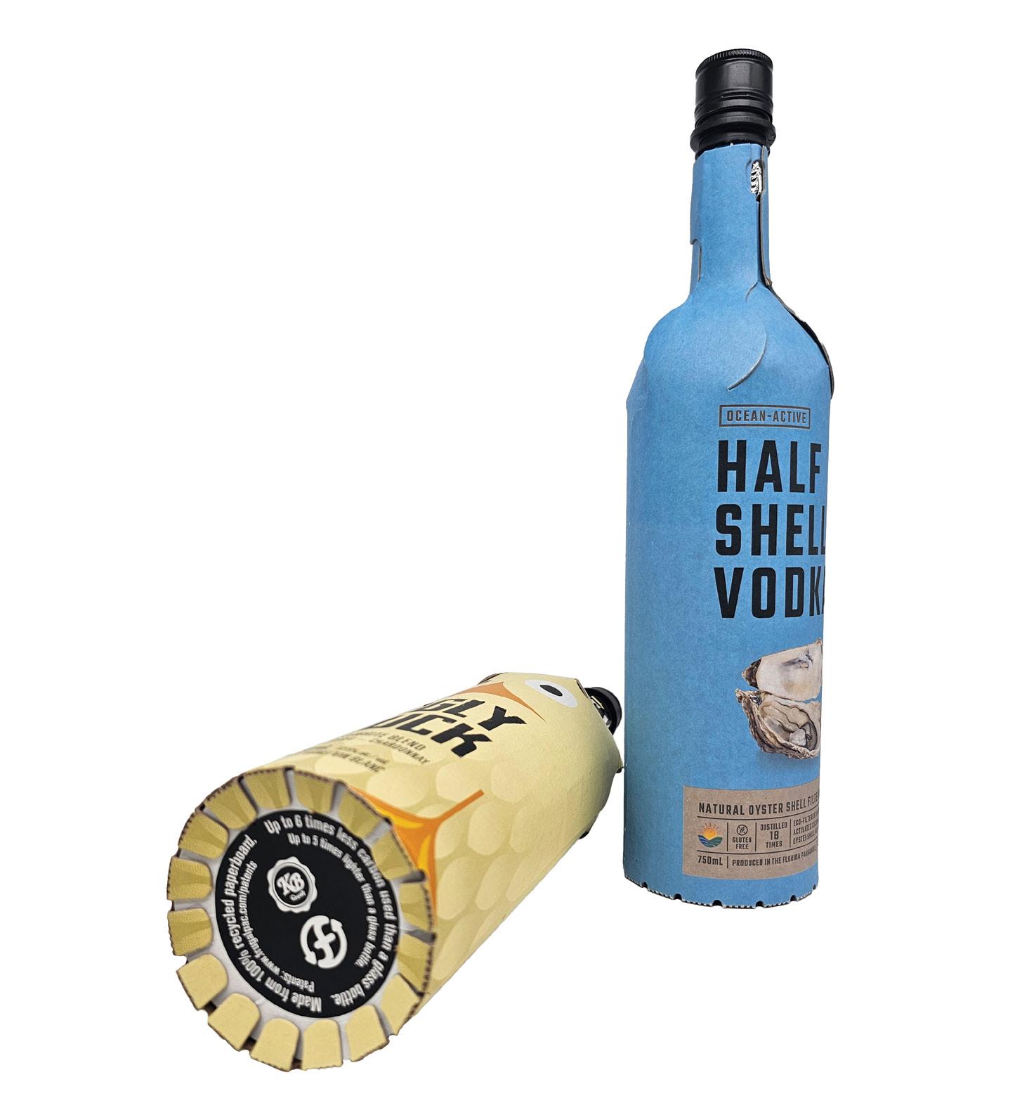 It may not exactly be a folding carton, but Frugalpac Frugal Bottle is constructed out of 94% recycled paperboard and is five times lighter and six times lower the carbon footprint than glass bottles. It allows for printing on all sides, provide quite the packaging “billboard” for brands.