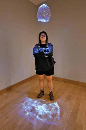 From August 30 through Oct. 14, 2023, Haddad spent time working on printmaking, papermaking and a sculptural installation that featured light and hand-blown glass. The artist also led a workshop and talked with senior visual art and design majors who visited the galleries.