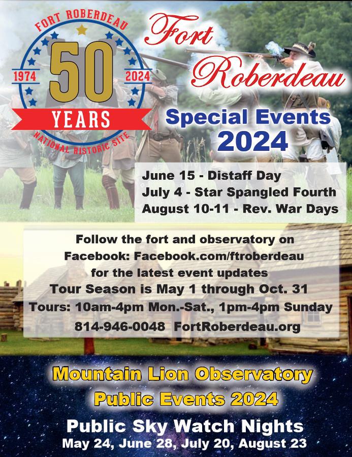 June 8-9. 20th French and Indian War Encampment. Sawmill Center for the Arts, Cooksburg. 814.578.9200, https://sawmill.org/festivals/