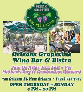 Extras Entertainment & Nightlife 12 Jazz Fest Previews 33 Night Shows 37 Live Music Calendar 40 Lakeside2Riverside 61 Movie Reviews 66 Where Y'Been 48 $20 & Under 50 Food News 53 Restaurant Guide 58 Bar Guide 22 Jazz Fest Cubes 30 Jazz Fest Map 62 Tales From the Quarter 65 Po-Boy Views 8 George Porter Jr. Plays On 20 Living Legends at Jazz Fest 42 Mother's Day-cations 45 Eternal Maternal Gifts 46 Traditions of Greek Fest Features Food & Drink Letter from the Publisher
