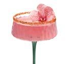Combine hibiscus syrup and other ingredients in a cocktail shaker with ice. Shake and strain into a coupe glass with Tajín salt rim. Garnish with a hibiscus flower.
