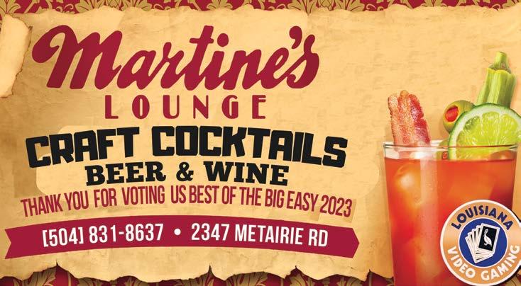 (504) 831-8637 • 2347 Metairie Road ENJOY OUR NEW PATIO HAPPY HOUR DAILY UNTIL 7PM