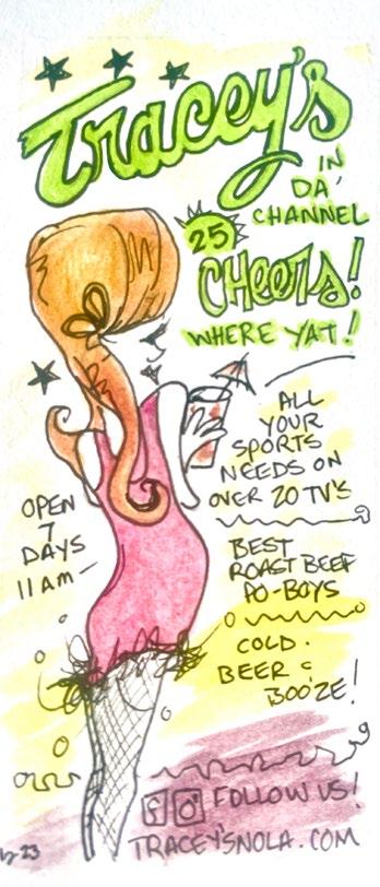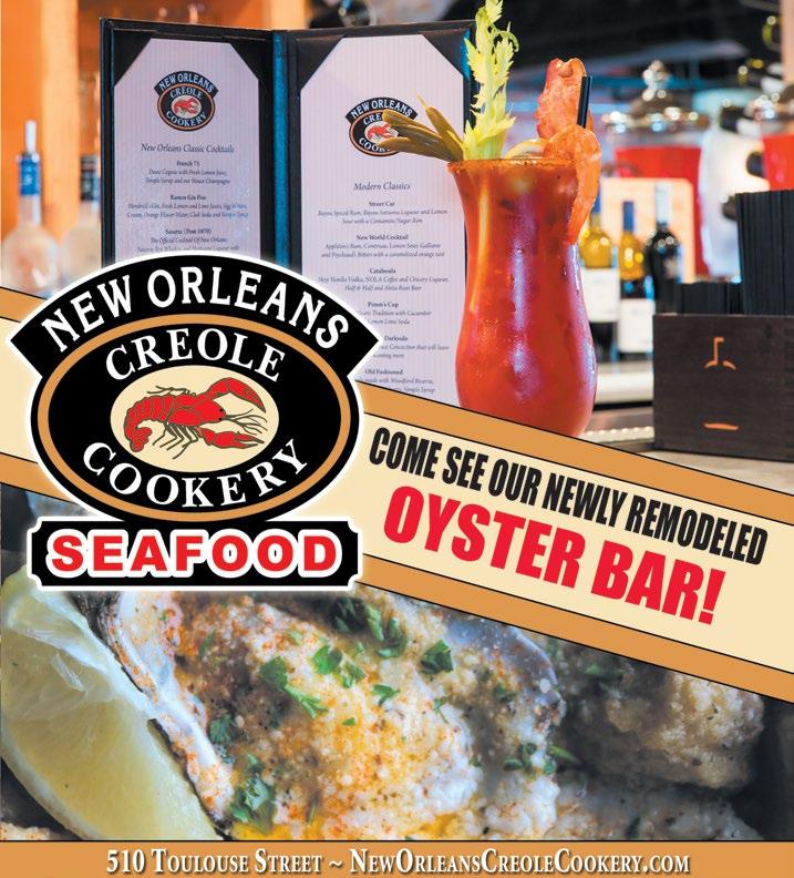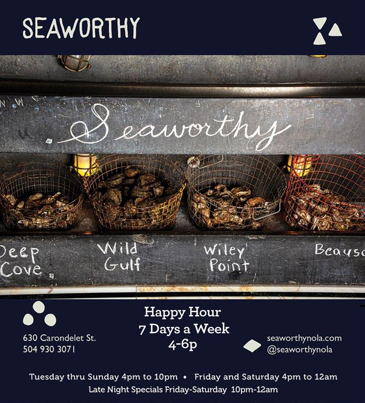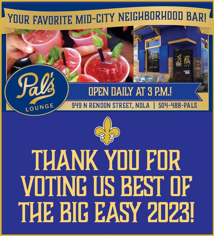 WhereYat.com | September 2023 3 INDOOR & OUTDOOR SEATING NOLA,s Foodie Freaks Great Specials Such As Taco Tuesday, Seafood Fridays, and Secret Saturday Specials! 7910 Earhart Blvd. | 504-302-2404 | Open Daily | Brunch Club Sat.–Mon. niceguysnola.com | @Niceguysnola GREAT HAPPY HOUR SPECIALS 2-for-1 Cocktails, $5 Margaritas, and More! CHARGRILLED OYSTERS AUTHENTIC NEW ORLEANS FOOD W/ A TWIST! DJ’S DURING OUR BRUNCH CLUB