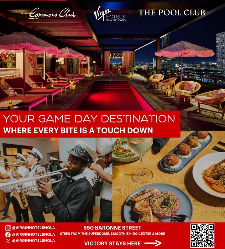 CLOCKWISE, FROM TOP:LSU ATHLETICS; LFWF; COURTESY TULANE UNIVERSITY ATHLETICS; COURTESY LAVEAU CONTRAIRE / SOPHIE ORMOND; GUSTAVO ESCANELLE 16 32 14