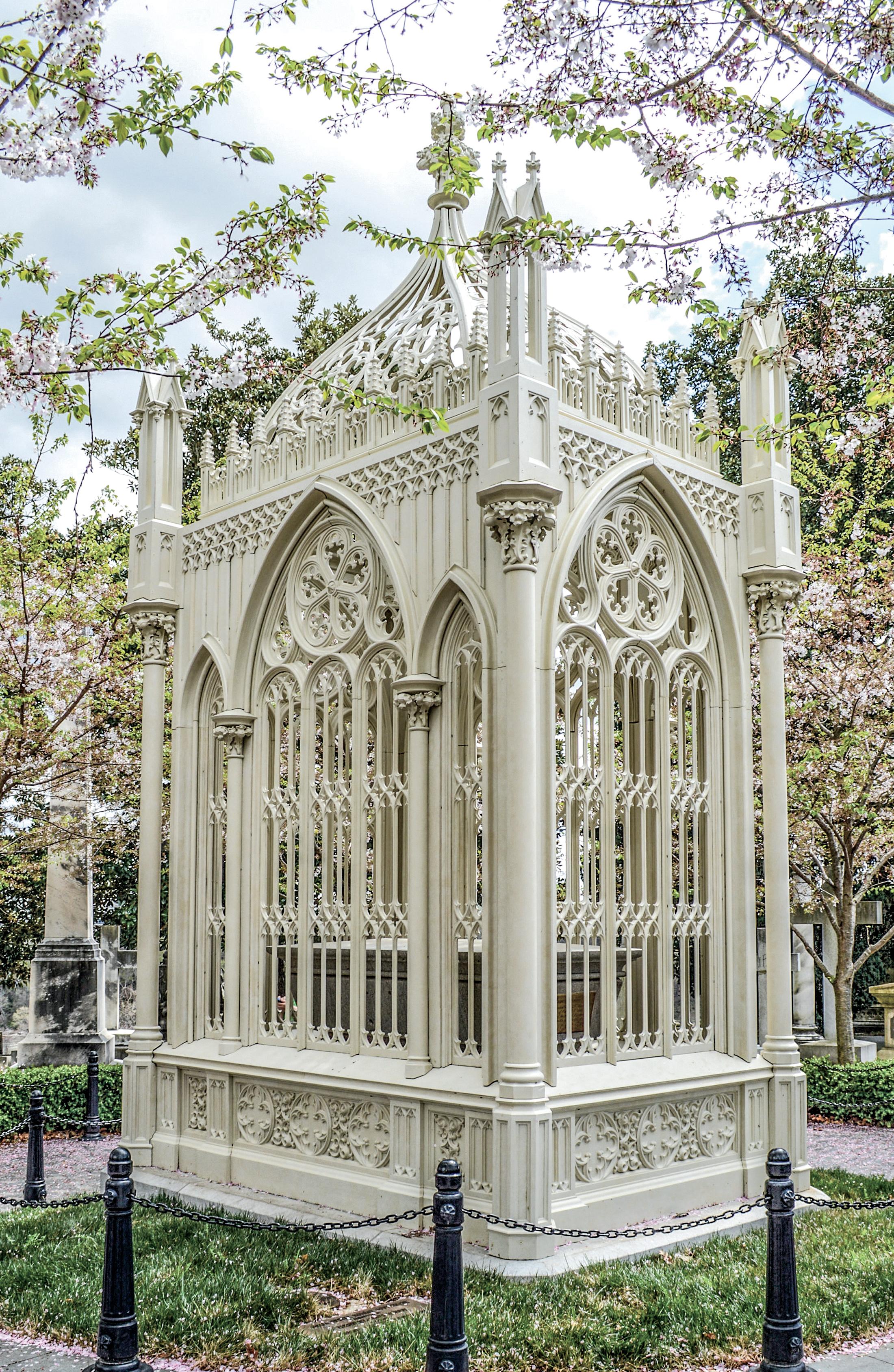 Since 1858, President James Monroe’s remains have rested in Hollywood Cemetery in Richmond, Virginia. The grand cast-iron Gothic Revival canopy enclosing the tomb, nicknamed “The Birdcage,” is seen here following an extensive restoration in 2017.