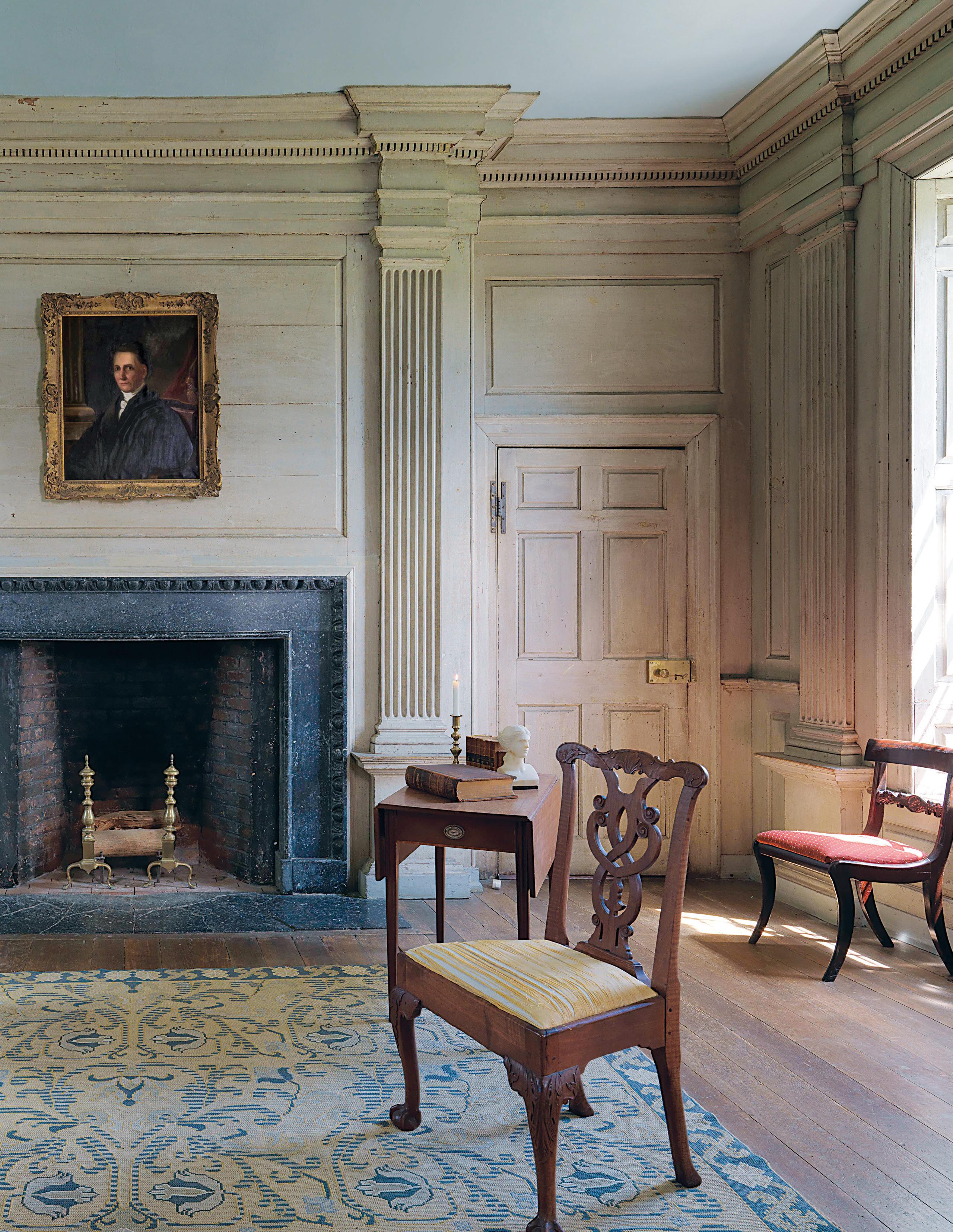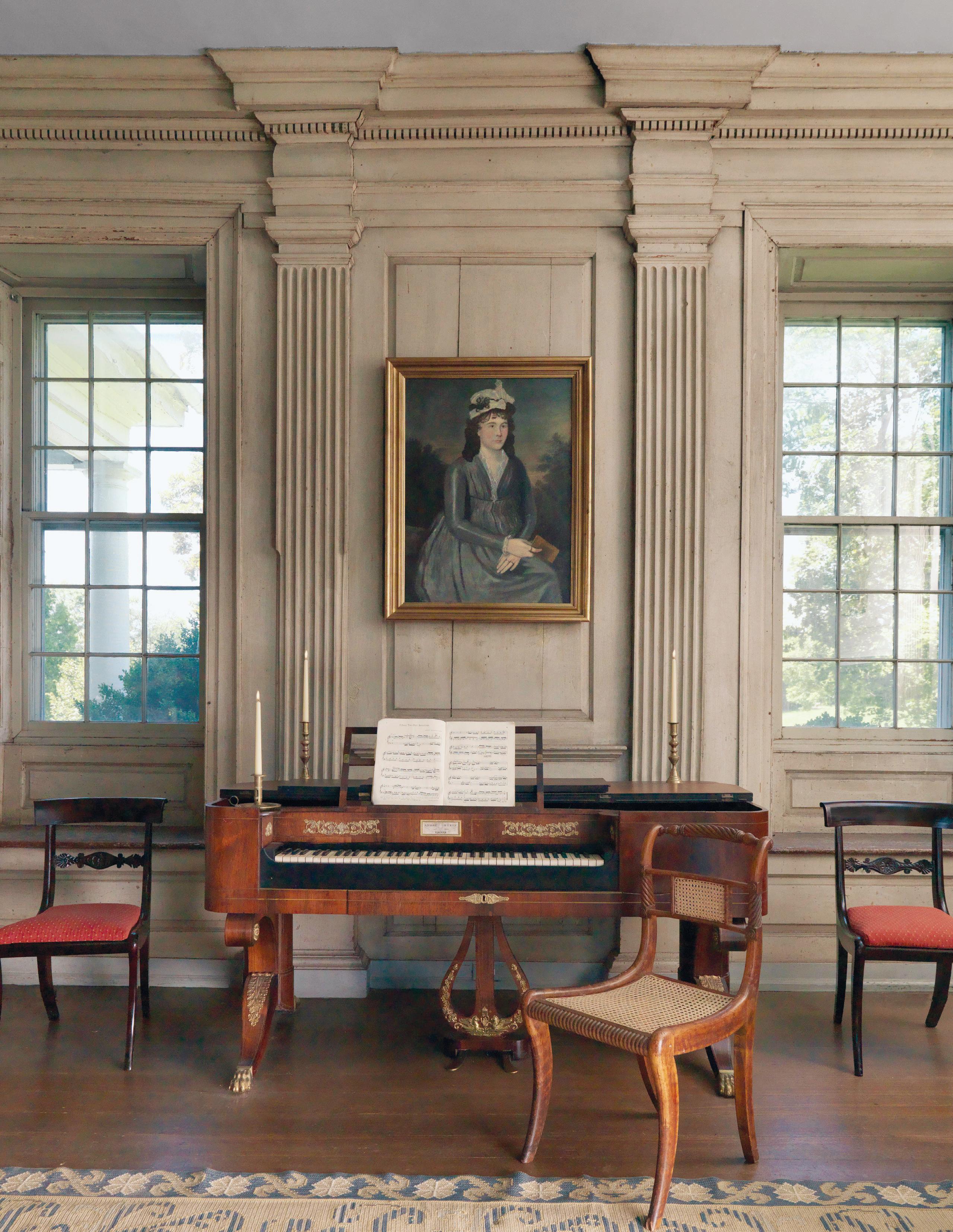 Walter Washington (above) reflects on scenes in his family home, preserved now for generations: “I’ve always liked the way the light comes into this room, and this picture (opposite) really captures that quality. The pianoforte was owned by Lucy Payne Washington. It was made in Vienna about 1800 by Andre Stein. We do not know how it arrived here, and it has not been played for years. The portrait above the piano is of Lucy, and John Drinker, who was a regional artist, painted it, probably in the late 1790s. The frame is not the original; it was replaced in the 1960s. The crack in the paneling behind the portrait happened when central heat was installed throughout the house in the 1960s. For a long time we had only one of the two chairs, the ones with the red seats seen here. But we found the second in the cellar, in total disrepair. It looked like it might have been broken in a bar fight. But now it has been repaired and sits here with its companion. The pair dates from about 1810. The floor is the original one laid down when the house was built. As far as I know it has never been refinished. As a child I remember watching my parents go over each board with steel wool to remove the grime. The job finished, they carefully waxed the wood, as so it remains.