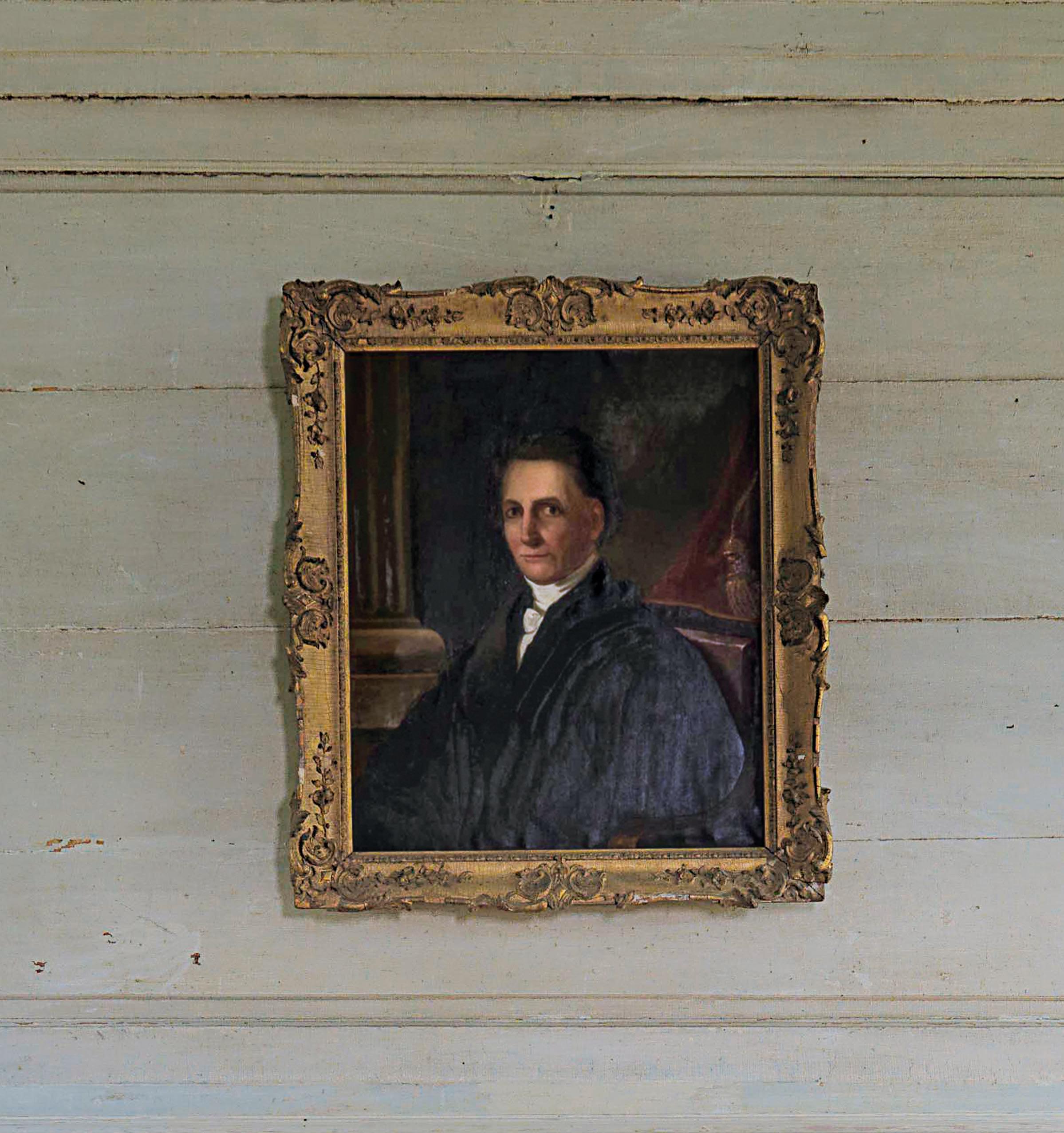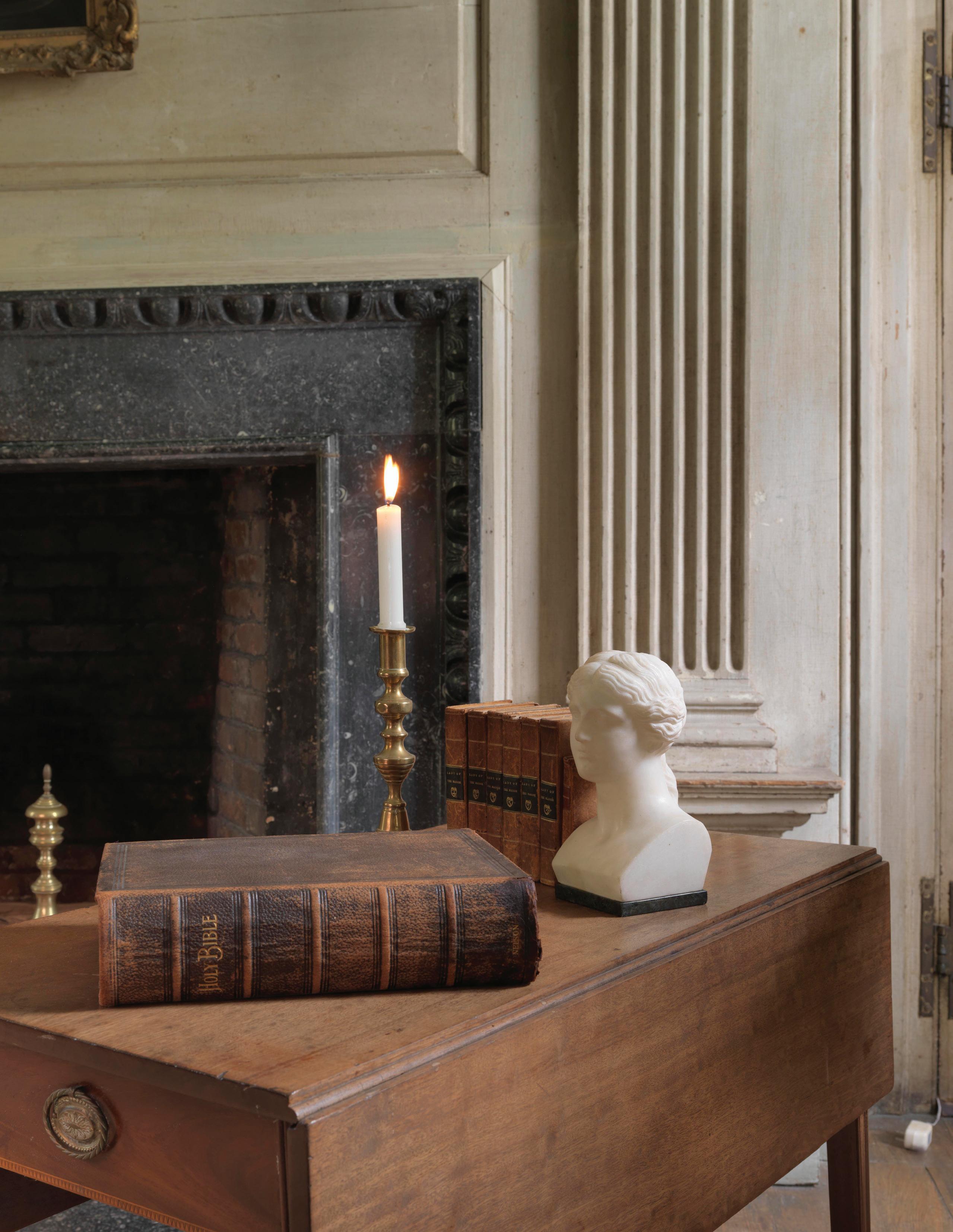 In describing this view, Walter Washington explains: “James and Dolley stood in front of this fireplace as the wedding service was read. The portrait over the fireplace is of Bushrod Washington, son of John Augustine Washington, and nephew of President George Washington. Bushrod Washington inherited Mount Vernon from his uncle and served as an associate justice on the United States Supreme Court, 1798–1829. Looking at this picture makes me realize that I live in a place that six generations of my family have called home, amidst all the things that they have acquired. The Bible on the table to the right of the mantel is a family Bible, but it is one of several. The books were bought by someone, I don’t know who and probably before the Civil War, and they have become part of the fabric of the place. The bust belonged to Patty Willis, my great-aunt. She was born and raised in Charles Town and was a member of the Provincetown Art Colony. She is the one who copied the portrait of Bushrod Washington that hangs over the fireplace.”