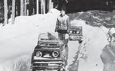 With the help of two snowmobiles driven by Gord and another friend, the party did multiple laps of Upper Whiskey Jack before rolling one of the sleds, breaking the flag, the key and the windshield. It was about 4 a.m. by the time they got the machine back up to the Alpine Service Building, and Janet stayed up to do the 5 a.m. weather reading, a daily duty of the alpine caretaker. Later that day, Janet and Gord went to the office of Jamie