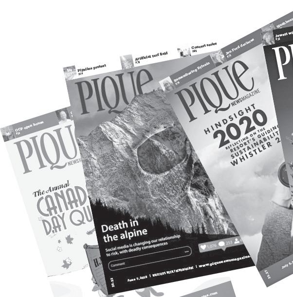 Pique Newsmagazine is a member of the National Newsmedia Council, which is an independent organization established to deal with acceptable journalistic practices and ethical behaviour. If you have concerns about editorial content, please contact (edit@ piquenewsmagazine.com). If you are not satisfied with the response and wish to file a formal complaint, visit the web site at mediacouncil. ca or call toll-free 1-844-877-1163 for additional information.