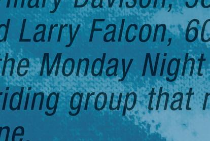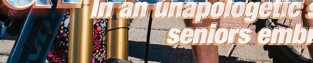 COVER L to R: Hilary Davison, 56, Scott Brunning, 66, and Larry Falcon, 60, in the Upper Village at the Monday Night Rides event—a social riding group that meets every week, rain or shine. - By David Buzzard // www.davidbuzzard.com