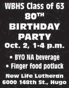 The schedule for the evening includes a social hour beginning at 5:30 p.m., dinner at 6:30 p.m. and a short business meeting for the historical society at 7:30 p.m. with the program to follow. Seating is limited and reservations are required. Reservations are available at wchsmn.org/event/falldinner25 or by calling 651-439-2298. For questions, contact the Washington County Historical Society at information@wchsmn. org or 651-439-2298.