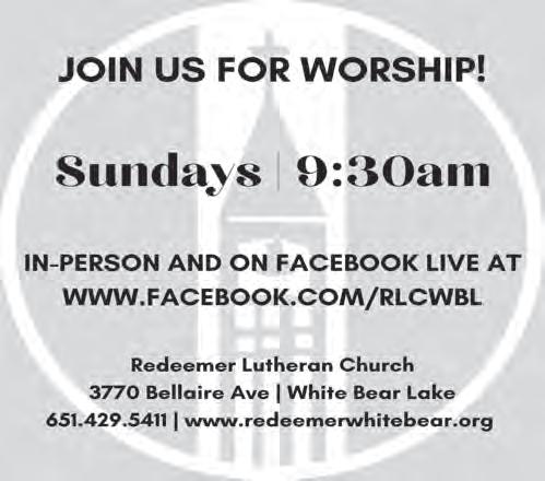 The Raptor Center will visit Redeemer Lutheran Church at 10 a.m. Thursday, Sept. 18. Come and experience the thrill of seeing live raptors up close and personal in the church’s atrium. There will be a presentation about raptors, the Raptor Center and the work they do. Sign up at the Welcome Center in the church or call the church office at 651-429-5411 by Sunday, Sept. 14. Redeemer Lutheran Church is located at 3770 Bellaire Ave., White Bear Lake.