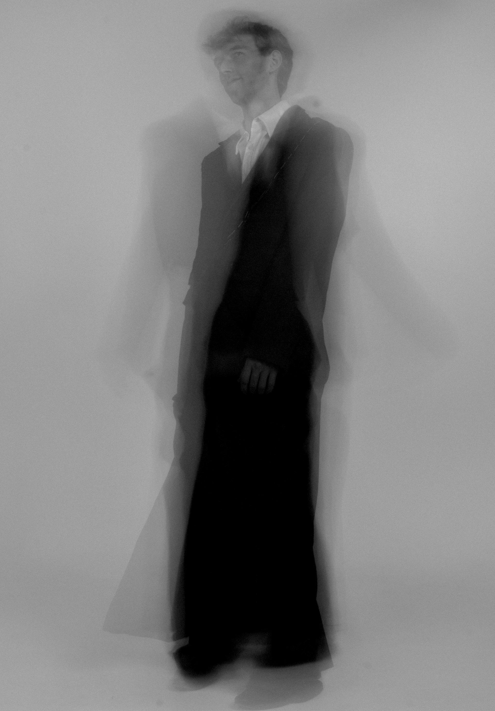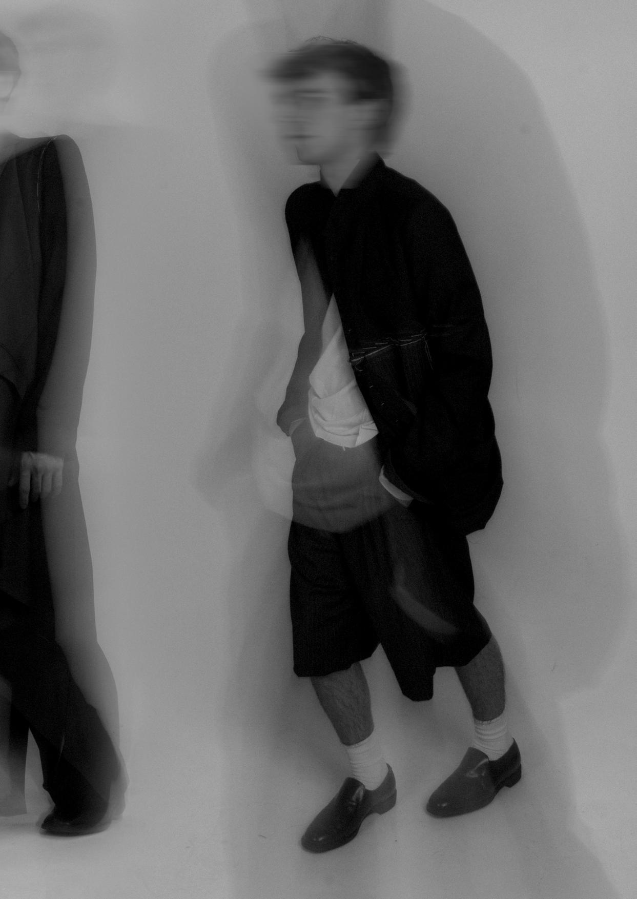 A Perfectly Fitting Suit? Is a collection that explores the relationship between the structure and fluidity found in classic menswear tailoring. By introducing slashes and drapes throughout these garments, an interaction of structural and nonstructural form is explored. This further allows these otherwise familiar archetypes to be simultaneously viewed as new, unfamiliar garments. The nature of garment construction is also explored, the processes and techniques that go into creating garments that are often hidden come into the final execution. This reveals the beauty in seemingly incomplete elements of a garment, and ultimately fosters an amalgamation of all stages of a suit’s construction, from fitting to the final press.