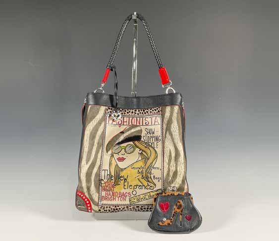Two unique creations from Mary Frances. The Mary Frances Minaudiere Bag boasts a rigid shell adorned with small to large beads, predominantly black with accents of gold, orange, and turquoise-colored faux stones. It features a bead and chain braided shoulder strap with a drop length of 17.25”. Dimensions are 8”L x 3.25”W x 4.75”H and it includes a Mary Frances metal nametag, label on the interior, and a dust cover. Meanwhile, the Mary Frances Animal Print Handbag is a charming purse adorned with an abundance of beads and multitextured animal print fabrics. It showcases a rigid, braided rope double handle and a magnetic closure. This bag measures 10”L x 4.5”W x 7”H, 10.5”H with the handle, and also includes a Mary Frances metal nametag, label on the interior, and a dust cover.