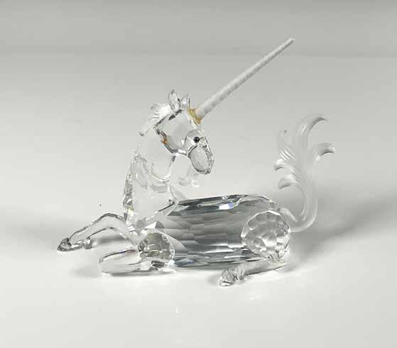 Silver crystal from the SCS exclusively. This is the annual edition 1996 of Fabulous Creatures collection. Features a dazzling clear cut crystal unicorn with frosted horn, tail and hair. Swarovski etched backstamp. Includes certificate and the original box, Dimensions: 10’’L x 9.5’’W x 4.5’’H.