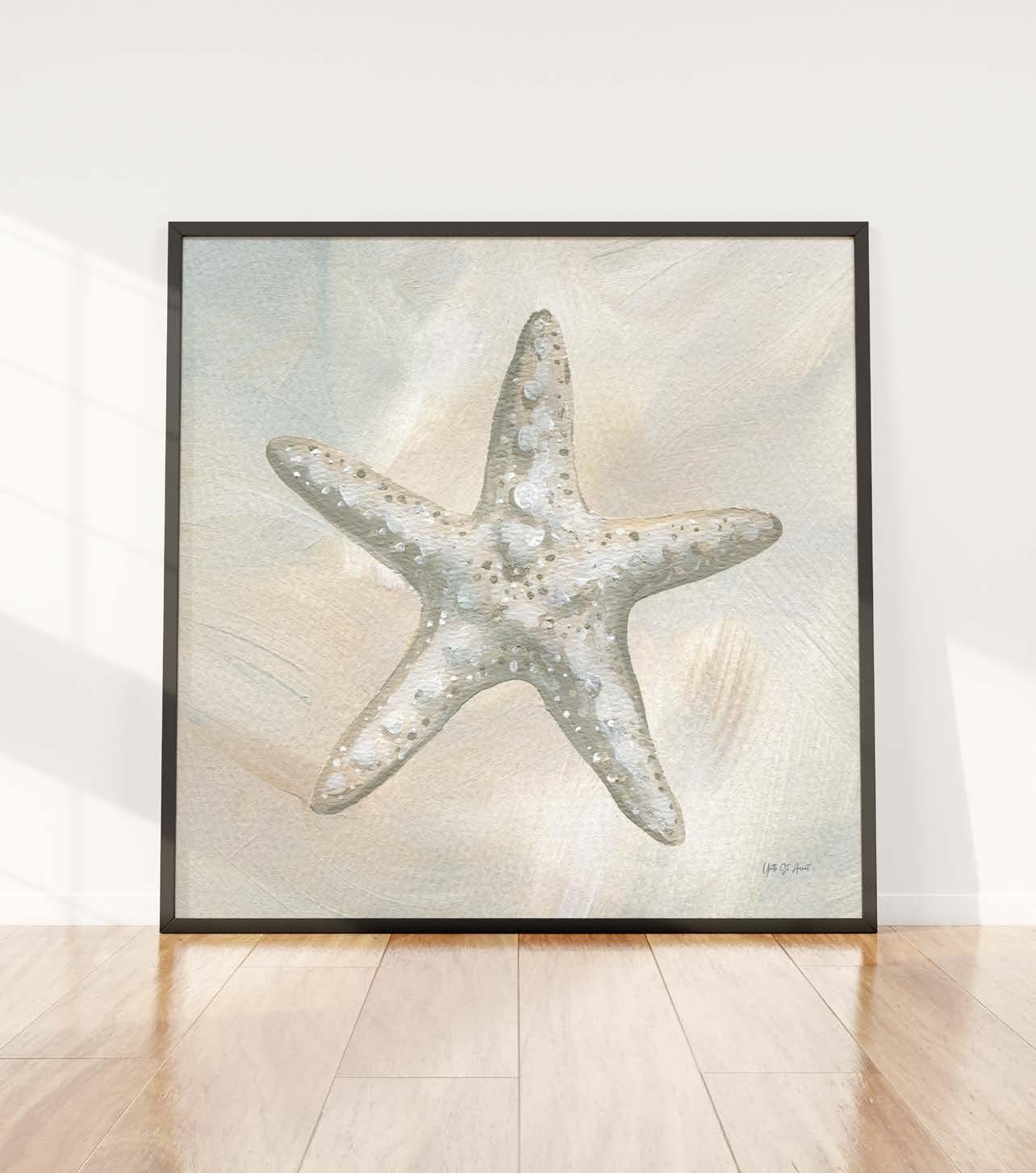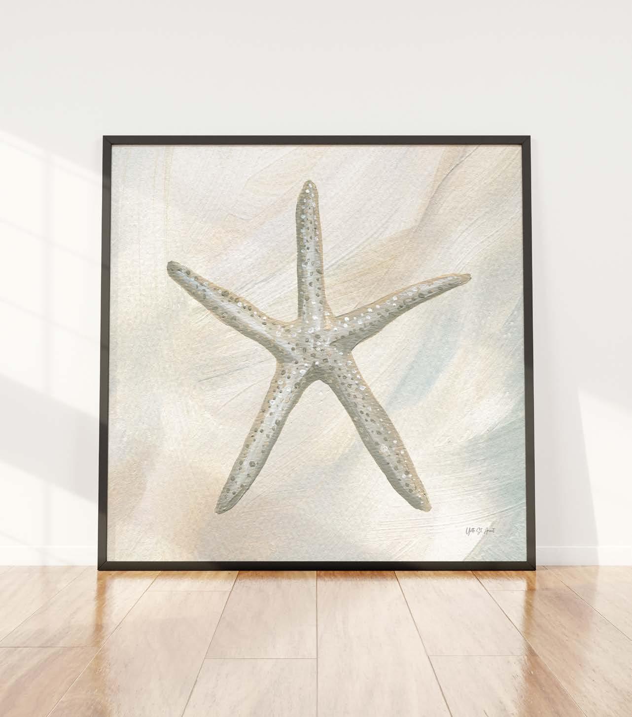 With serene color palettes of blues, browns, seashells, this designer coastal fine art adding a touch of refined beachside charm