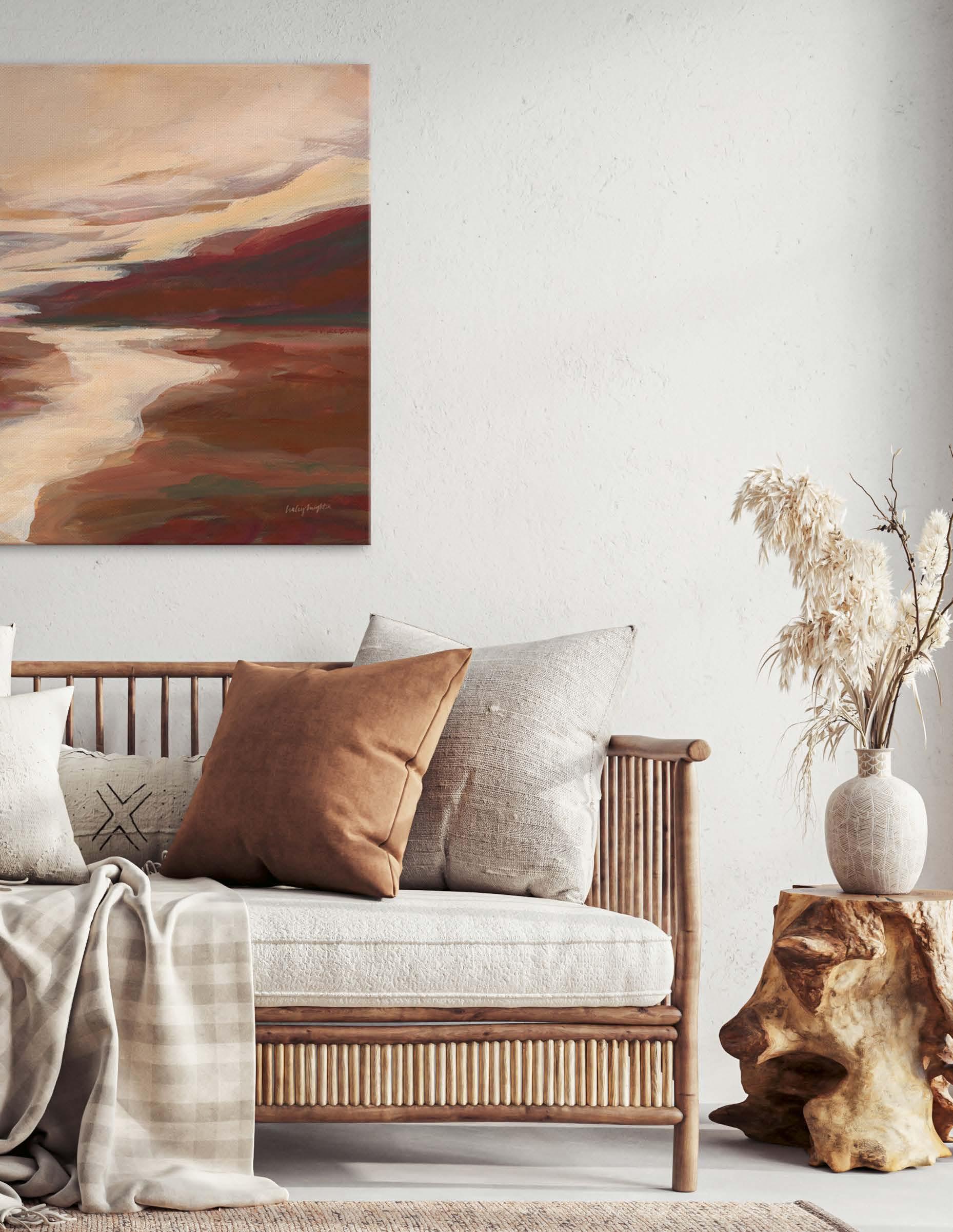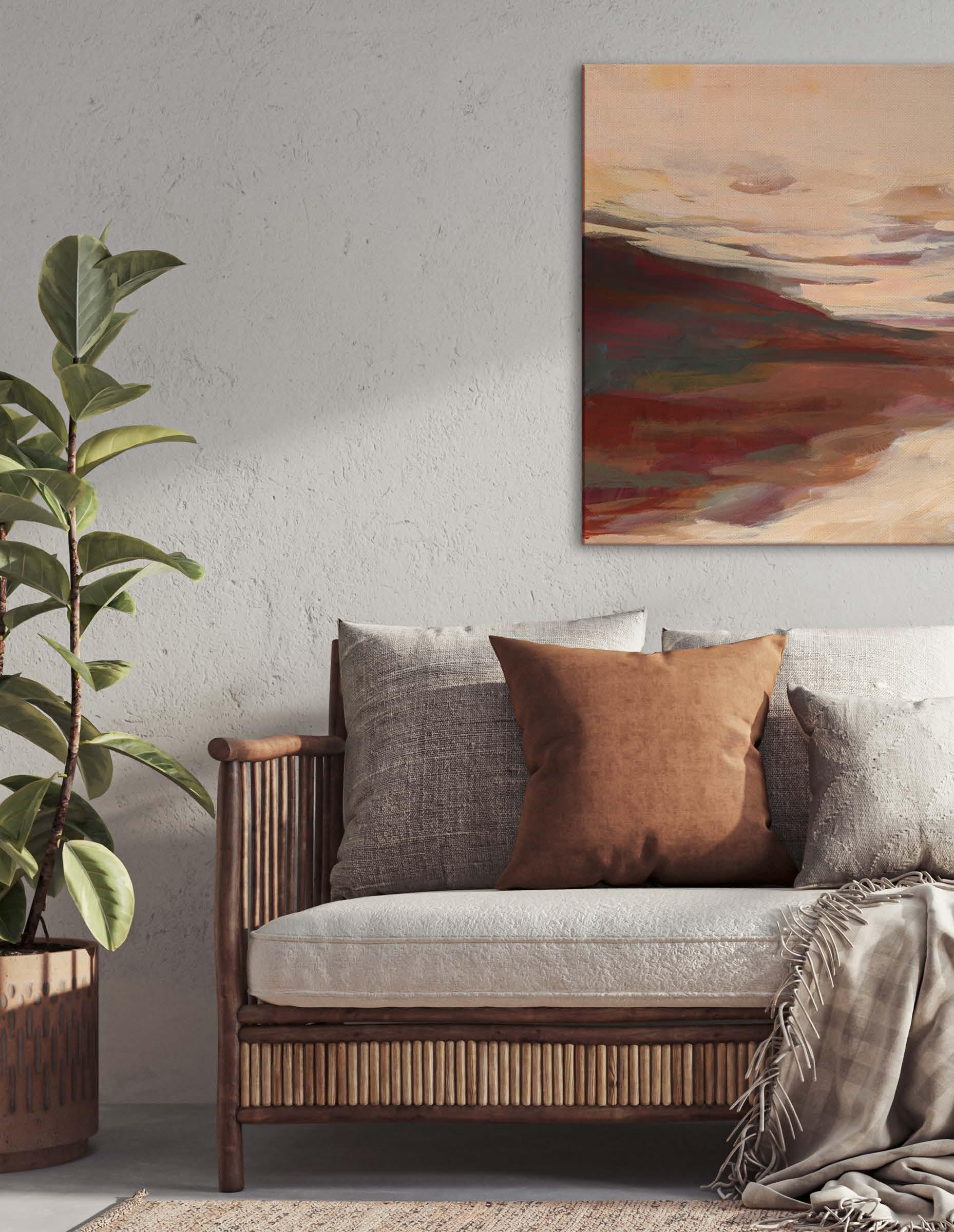 Picture this: stunning landscapes and abstracts, all brushed in soothing earthy tones—think lush greens, deep rusts, and robust browns. It’s the perfect palette for creating interiors that feel inviting and utterly peaceful.
