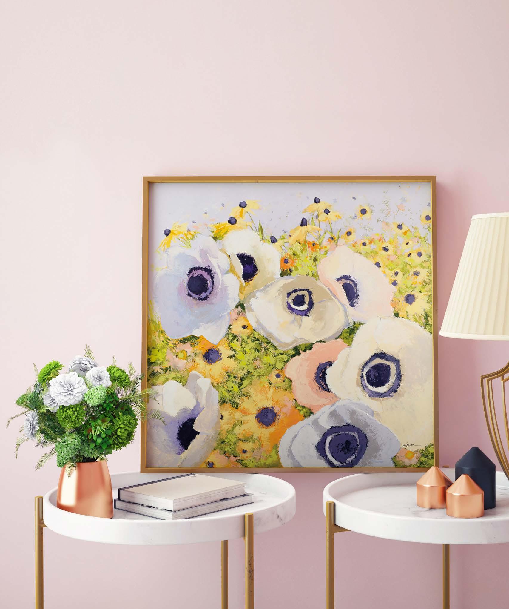 This trend brings the light and airy vibes of springtime right into our living spaces with soft and pretty floral art. We’re talking about those soft muted topes of pink, yellows, and earthy greens that just make your heart sing. It’s like having your own little garden party on your walls!