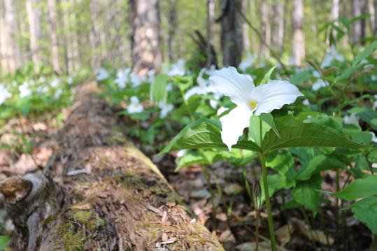 cover and food for Ruffed Grouse underneath the falling canopy. Dead logs also provide habitat for plants as “nurse logs”, providing the perfect seedbed for some tree seedlings and other plants and fungi. This is all a part of the cycle of life in a forest. Arrowhead is known for its large well treed campsites, and we want to keep it this way. This is why we are very strict when it comes to visitors damaging park trees. For example, lodging an axe into a tree is an evictable and expensive offence. Removing branches for roasting a marshmallow is the same offence. We have made it one of our goals to plant trees and renaturalize areas of the park that are no longer used. For example, sections of unused or rerouted trails and roads and old building sites are areas of focus for us when we are preserving the natural integrity of the park. This is all a part of the balance we are determined to maintain when it comes to an increasingly busy visitation rate and ecological integrity- we want to give back to nature where we can, and not take too much. Please respect the park trees by leaving them be!