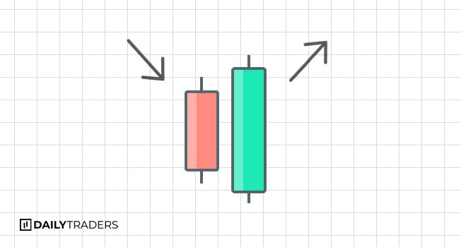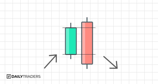 The second candlestick completely engulfs the first one, which is how this pattern was named
