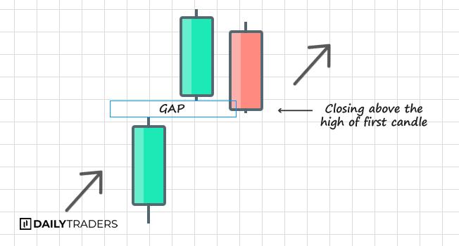 The next three candlesticks will reveal a temporary downtrend in the market as they will be short and bearish. However, they will form above the gap of the first candlestick.