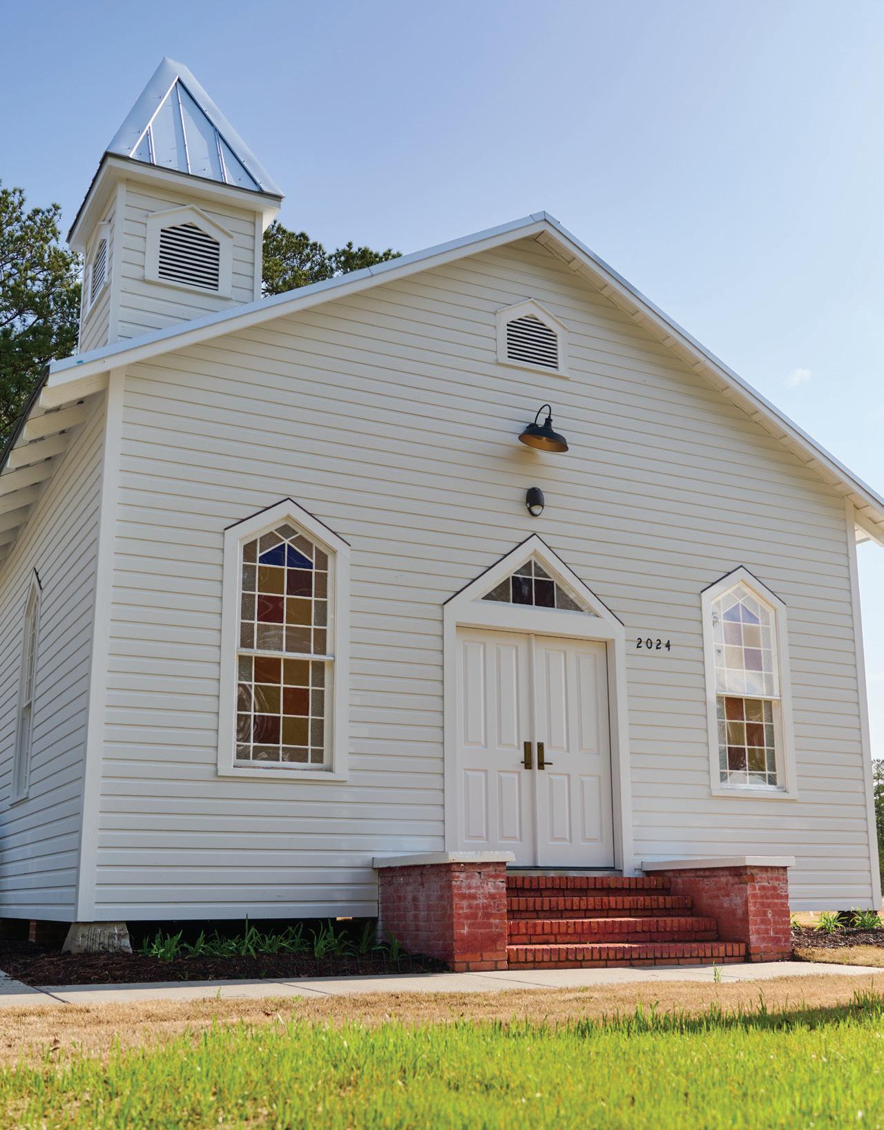 SIX YEARS AFTER RESTORATION WORK STARTED, OFFICIALS HELD A DEDICATION CEREMONY IN MARCH IN NAVASSA FOR REAVES CHAPEL – one of the oldest African American buildings in Southeastern North Carolina. The Civil War-era church was built along the banks of the Cape Fear River by people who had formerly been slaves at Cedar Hill Plantation. They, along with former slaves from neighboring rice plantations, made up the congregation. The building moved to its current spot on Cedar Hill Road where it served as an AME church for years but later fell into disrepair. Alfonso Beatty, president of the Cedar Hill/West Bank Heritage Foundation, who died earlier this year, spearheaded the project and worked with the Coastal Land Trust to utilize grant money to buy the church in 2019 and start the restoration. As part of that work, the church, which had to be stabilized, saw the return of its original walls and floors, as well as its original stained-glass windows. Officials now want to make the building a historic site.