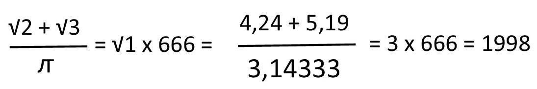 Pi (ꙥ) = √2 + √3 = 9.43 / √1 = 3 = 3.14333333 ……