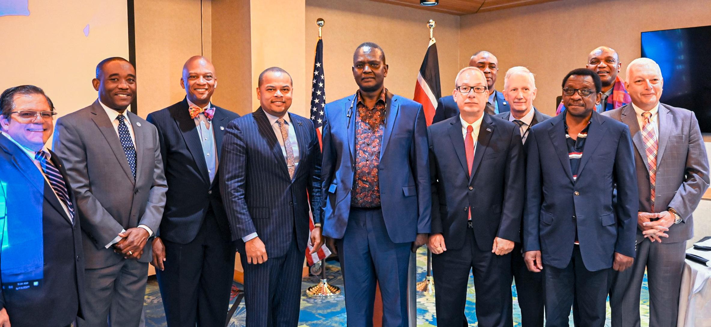 L-R: Mr.U. Desmond Alufohai, Mr. Rupen Philloura, Division Director of Operations, MDAD, Mrs. Nkechi Okpara Thompson, Ms. Elizabeth Ann McNeill, Mr. Anobb Hyacinthe, Miami-Dade County Commissioner Jean Monestime (D2), Ambassador (Dr.) Amina Almira Smaila, Consul General of Nigeria in Atlanta, GA, HE Geoffrey Onyeama, Miami-Dde County Commissioner Oliver Gilbert, III, (D1), Mrs. Kemi Arosanyin, Center for International Trade Development—Miami, Ms. Retha BooneFye, Program Director for Miami-Dade Black Affairs Advisory Board, Mr. Gerard Philippeaux, PortMiami, and MDAD’s Director and CEO, Ralph Cutié.