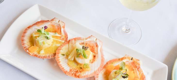 The title éléments is derived from the natural elements of fire, water and soil. These elements and quality produce are transformed by Executive Chef Michael Watson who has created a menu influenced by the flavours of France and Italy. Our grilled half shell scallops with saffron butter, fennel & orange salad is sure to impress and is the perfect starter to a lazy late summer meal.