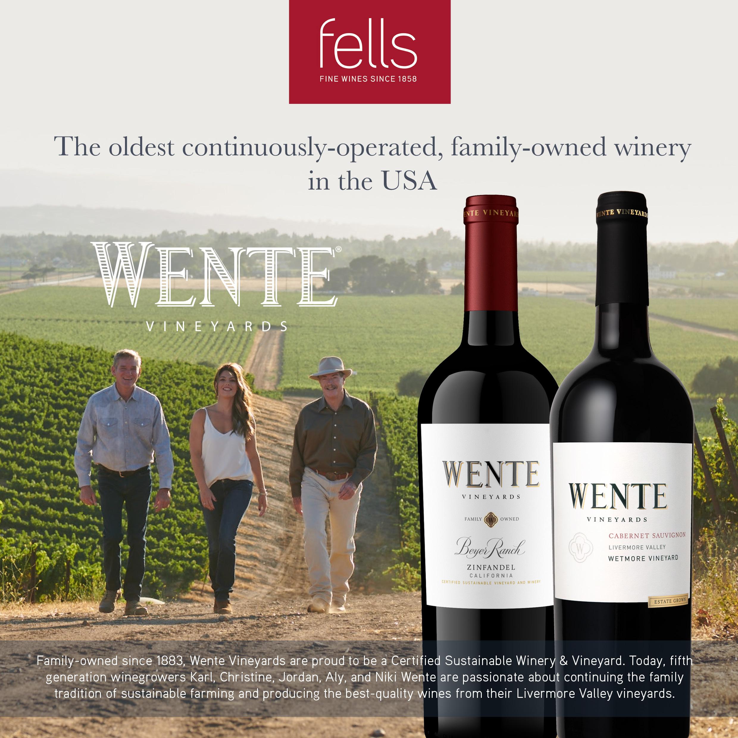 Planted on sloping benches that lead to the Arroyo del Valle and Arroyo Mocho streams, the Beyer Ranch is one of the Wente family’s favourite Zinfandel locations. For the eponymous cuvée, the highly experienced producer (founded in 1883) ages the wine in a mix of stainless steel and neutral oak. “Classic raisiny aromas and deep black fruit, smooth yet rich with decadent notes of dark chocolate.”