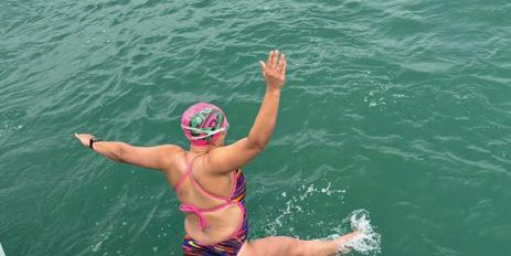 Katie Jarek (BBA ’07) crossed the English Channel with her swim team in July 2024! Swimming in frigid waters and surrounded by jellyfish, Jarek and her team completed the journey in about 19 hours.