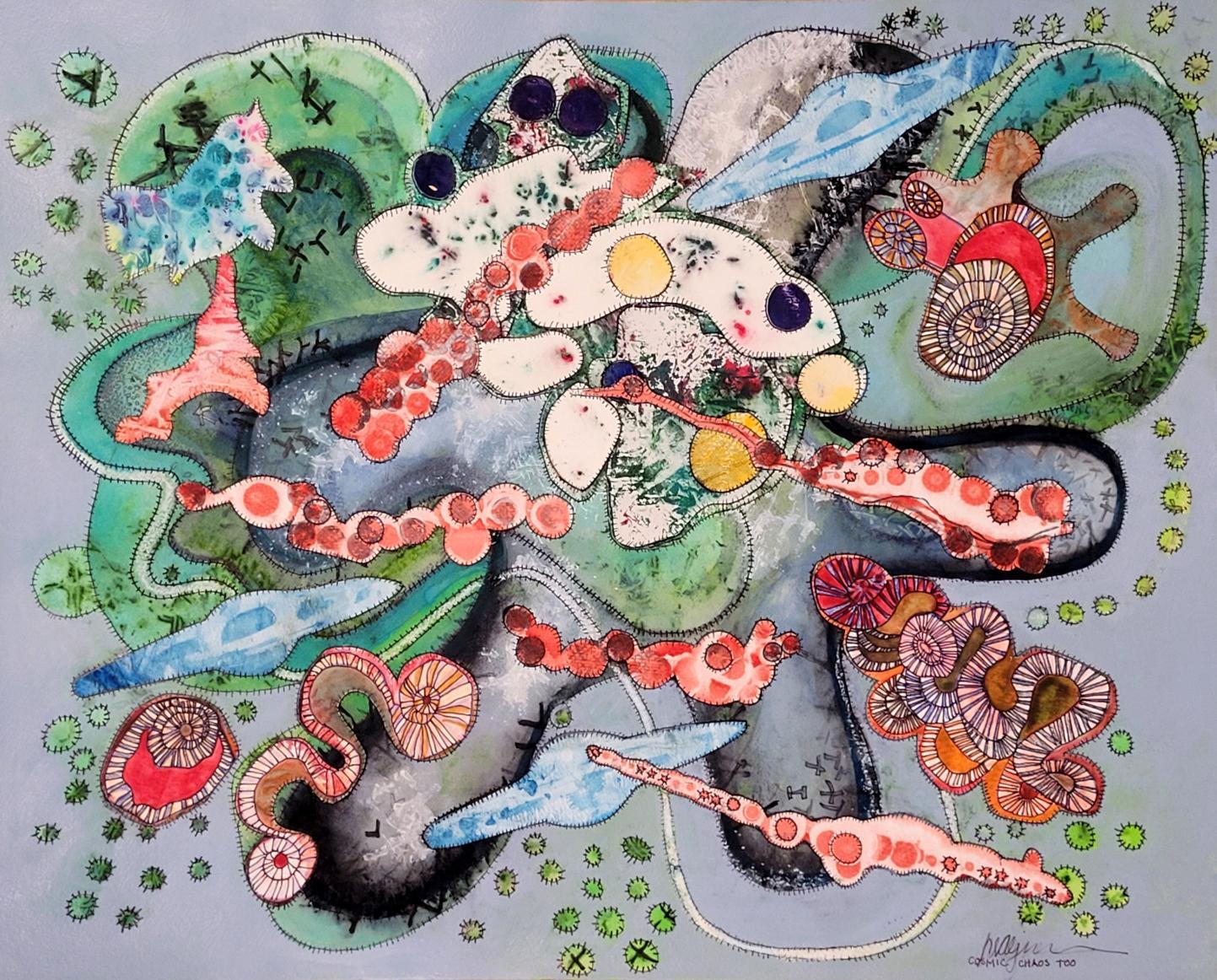 I created Cosmic Chaos Too to speak to what is happening, imagined to be happening, and may happen. Truth, fiction, fantasies, lies, and conspiracy theories circulate as we emotionally respond.