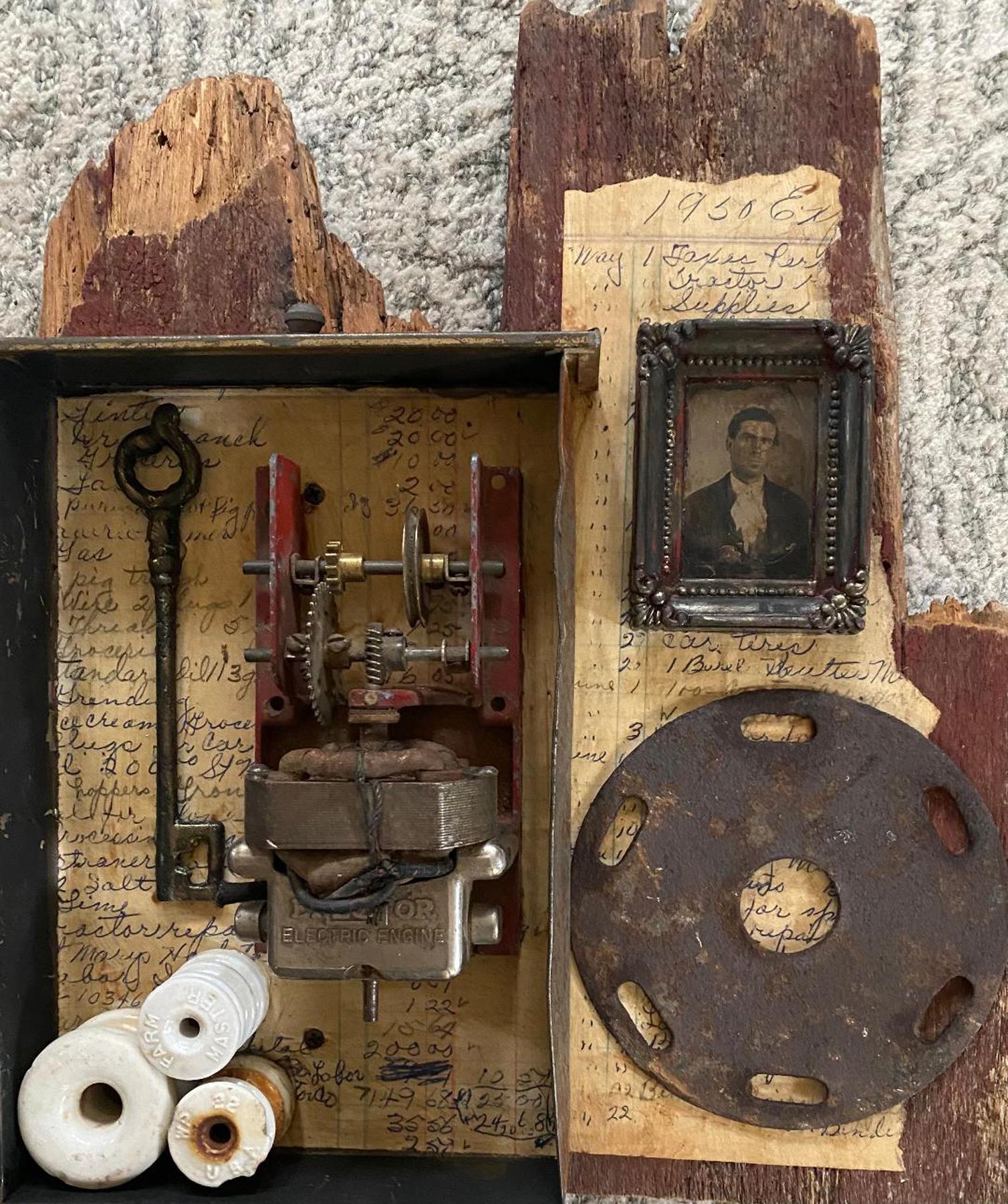 My passion for creative expression through art has always been a part of me since childhood. My visual creations express my personal vision and evoke the emotional experience of the moment, such as this assemblage called "Wrest." It conveys a message that makes one think or sparks curiosity, and inspiration.