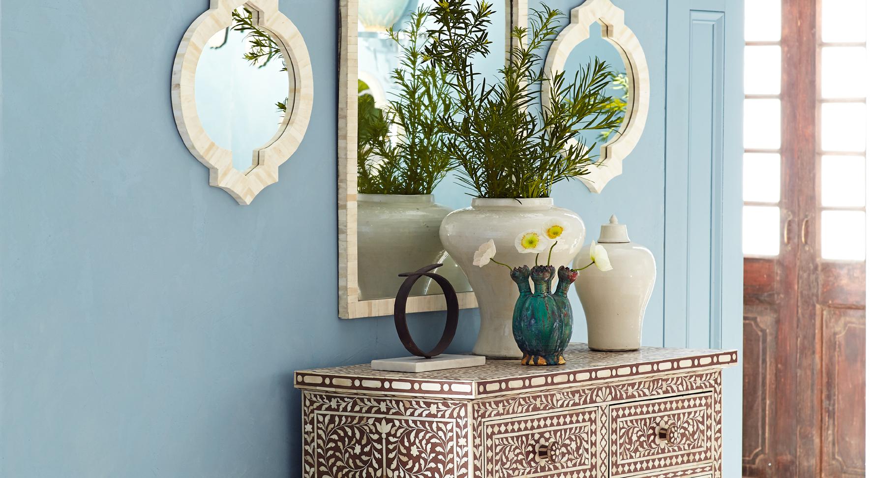 Wisteria brings this tradition into the present with our custom inlay pieces in bone or mother-of-pearl. Each design blends timeless technique with modern form, creating elegant accents that celebrate Indian craftsmanship.