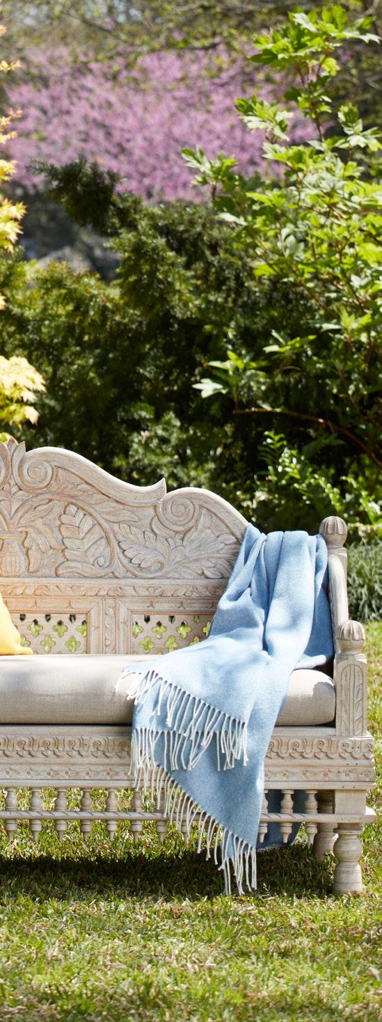 ON THE COVER A. NEW Caraway Swing 110-111440 $1,975.00 B. NEW Corsica Swing 110-111462 $1,850.00 C. NEW Rana Wooden Bench 110-111436 $1,500.00 outdoor oasis WELCOME LEISURE WITH OUR EXQUISITE BENCHES AND SWINGS, WHERE