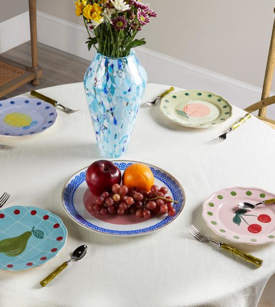 A. NEW Antoinette Soup Bowls, Set of 6 106-111435 $225.00 // B. NEW Cenare Dinner Plates, Set of 4 106-111419 $150.00 // C. NEW Antoinette Dinner Plates, Set of 6 106-111434 $225.00 // D. NEW Antoinette Dessert Plates, Set of 6 106-111436 $200.00 // E. NEW Antoinette Teapot 106-111438 $85.00 // F. Antoinette Teacups, Set of 2 106-111437 $85.00 // G. Vito 20-Piece Place Setting 106-111236 $250.00 // H. Formaggio Cheese Bowl 106-111394 $225.00 // J. Fresca Wine Glasses - Set of 6 106-111252 $45.00 // K. Piovere Glass Vase 106-111366 $650.00 italian elegance ENJOY OUR PARTNER BACI MILANO'S ITALIAN DINNERWARE, WHERE EVERY PLATE AND TEA SET WEAVES A STORY WITH PLAYFUL DESIGNS AND GRACEFUL PATTERNS. THESE ARE AVAILABLE IN BLUE (SHOWN) AND IN RED. SEE THE FULL COLLECTION AT WISTERIA.COM B C D E F G H J K G G F E WISTERIA.COM // 37