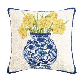 Yellow Daffodils and Chinoiserie Pot Hooked Pillow 167-111178 $60.00
