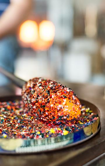 J. Millefiori Glass Vase 106-111363 $500.00 // K. Queen City Table Lamp 133-111113 $350.00