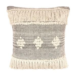 // P. Floral Porcelain Round Jar 109-111308 $65.00 // Q. Bancroft Throw 106-111397 $75.00 // R. Clare Jute Trimmed Pillow 192-111167