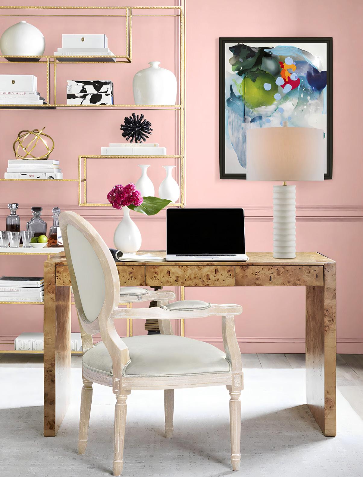 A. St. Emillion Etagere 110-111149 $1,975.00 // B. Sandstone Ridge Lamp 136-111150 $500.00 // C . Fortnight Print 131-111128 $550.00 // D. Oslo Burl Wood Veneer Desk 110-111180 $2,025.00 // E. Louis XVI Arm Chair 110-111117 $775.00 // F Kirkwood Pendant 144-111176 $650.00 // G. Marjorie Rattan Single-Light Dome Pendant 136-112271 $725.00 // H. Georgia Pendant in Pale Blue Glass 138-111198 $450.00 // J. Coastal Pendant 138-111518 $575.00 // K. Gardena Table Lamp 138-111352 $190.00 // L. Polite Table Lamp 138-111308 $300.00 // M. Whittier Table Lamp 138-111346 $240.00 N. Berlin Table Lamp 183-111143 $150.00 // O. Arbor Table Lamp 136-112237 $600.00 // P. Berryton Table Lamp 138-111395 $425.00 // Q. Austin Table Lamp in Orange 136-111647 $525.00 // R Eaton Table Lamp 136-112208 $575.00 F K O G L P H M Q J N R WISTERIA.COM // 31