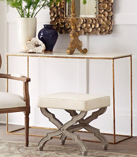 A Vintage Carved Wood Console 110-111433 $1,350.00 // B Hansen Console 138-111364 $575.00 // C. Antiqued Gustavian Console 110-111136 $1,850.00 // D. Rana Tiered Console 110-111137 $850.00