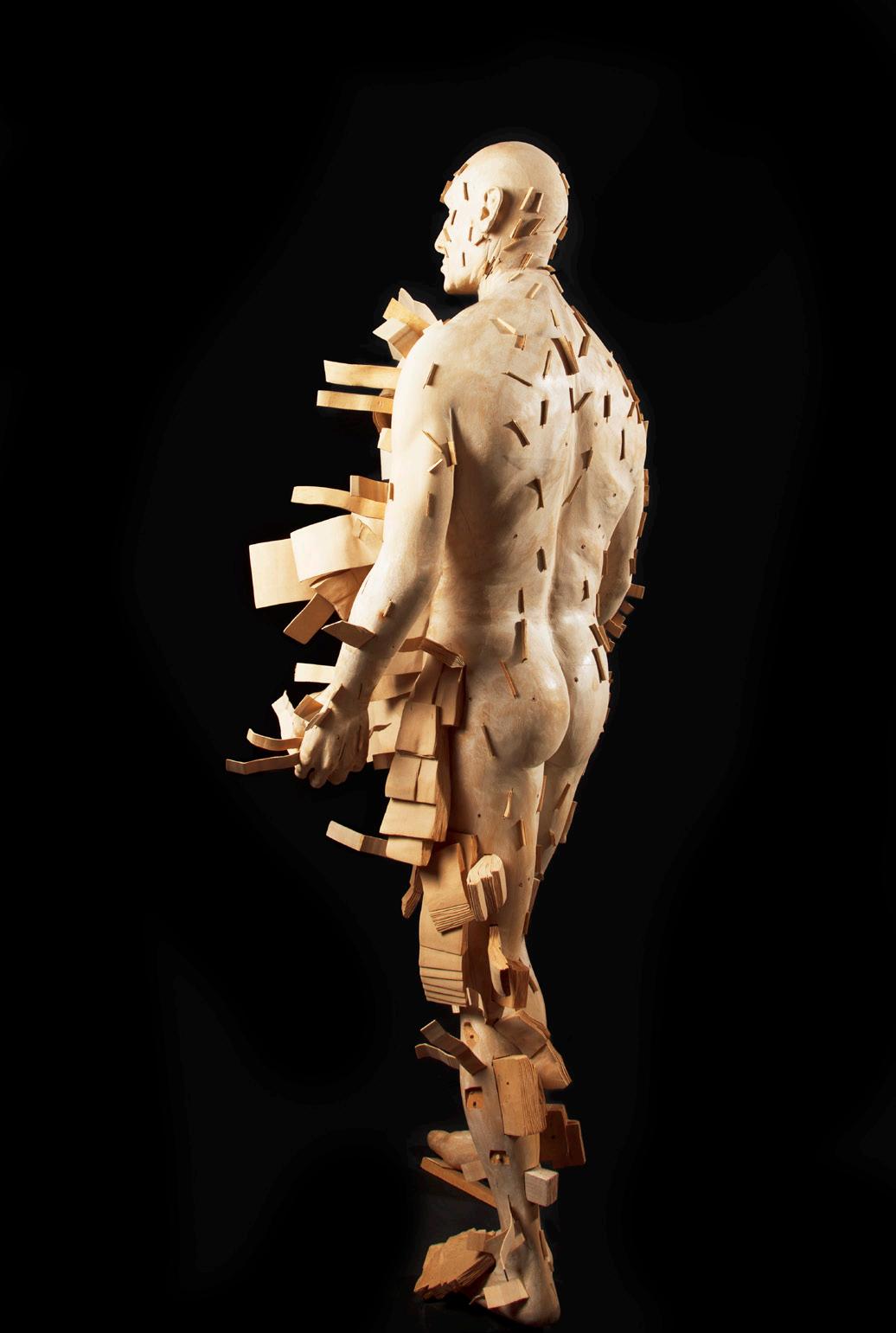 Why do you think the artist chose to leave the torso rough, seemingly incomplete in comparison to the legs of this sculpture? What does the title FigureinDisguiseI mean for you?