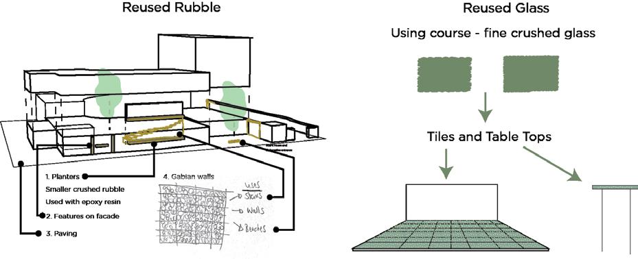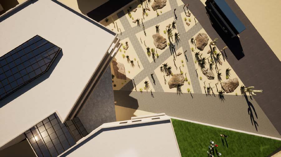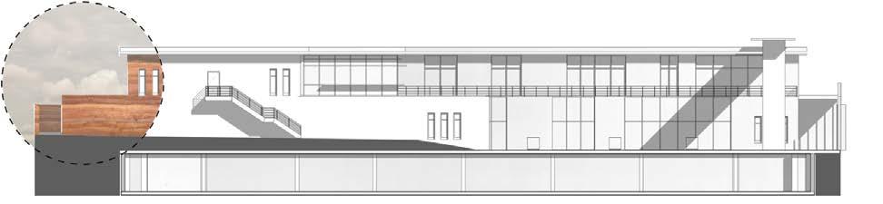 WELink is the name that I have chosen for this proposal for the Amic Deck and the Student Commons; a name that reflects the func�on of the build ing in linking West and East campus. The design narra�ve is about crea�ng a more relatable architecture. This is achieved by ar�cula�ng a human-scaled perimeter around the site with which occupants can inter act. For the Amic Deck, this means crea�ng small-scaled res�ng areas that break up the deck visually to facilitate more relatable experiences. This concept permeates into material ity. The interven�ons are made of rocks from the excava�ons on site and reclaimed �les from the old Amic Deck. The human-scaled perimeter differen�ates itself from a general ins�tu�onal typology. The approach seeks to set a new course for the image of Wits by using relatable mate rials like earth, wood, and corrugated shee�ng. A mul�-storey tower shoots up from the perimeter border. It looks to Wits Art Museum as a good indica �on of contemporary design within Wits’ iden�ty.